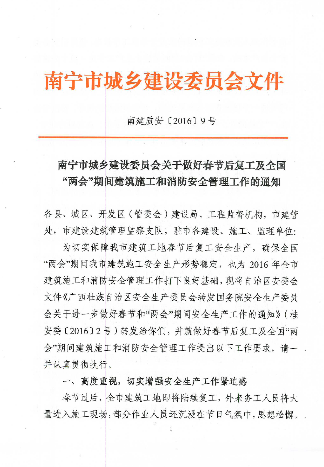 下一篇:自治區(qū)住房城鄉(xiāng)建設廳關(guān)于認真做好節(jié)后復工及全國“兩會”期間全區(qū)建筑施工安全生產(chǎn)工作的通知(桂建管〔2016〕9號)